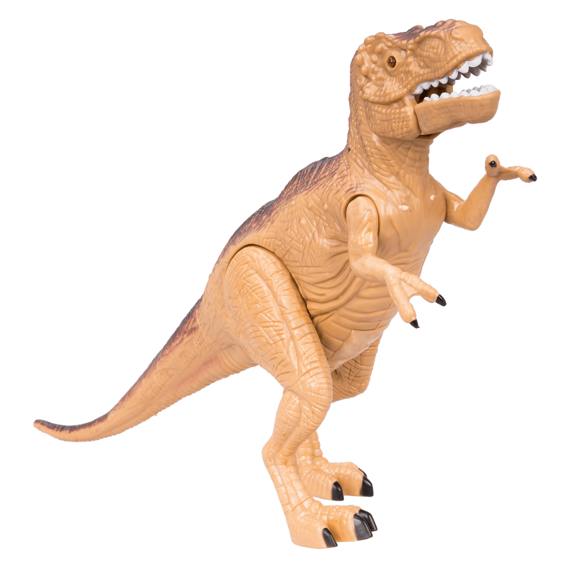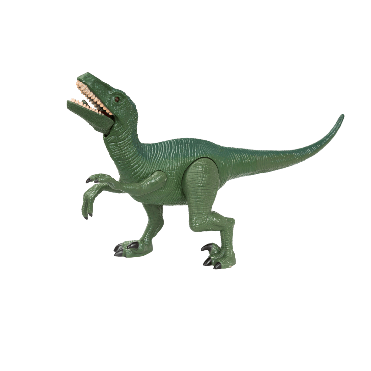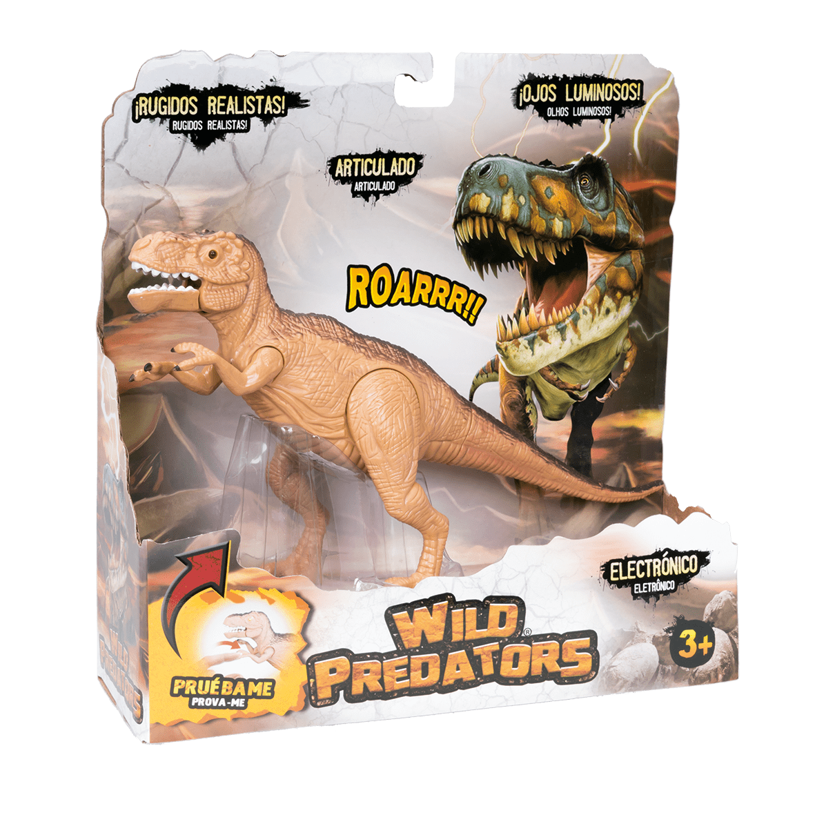 ¡Increíbles dinosaurios con rugidos realistas! Presiónale la mandíbula para escucharlos. Tres modelos: Tyrannosaurus Rex, Triceratops y Velociraptor. Sus ojos se iluminan. Dinosaurios articulados.