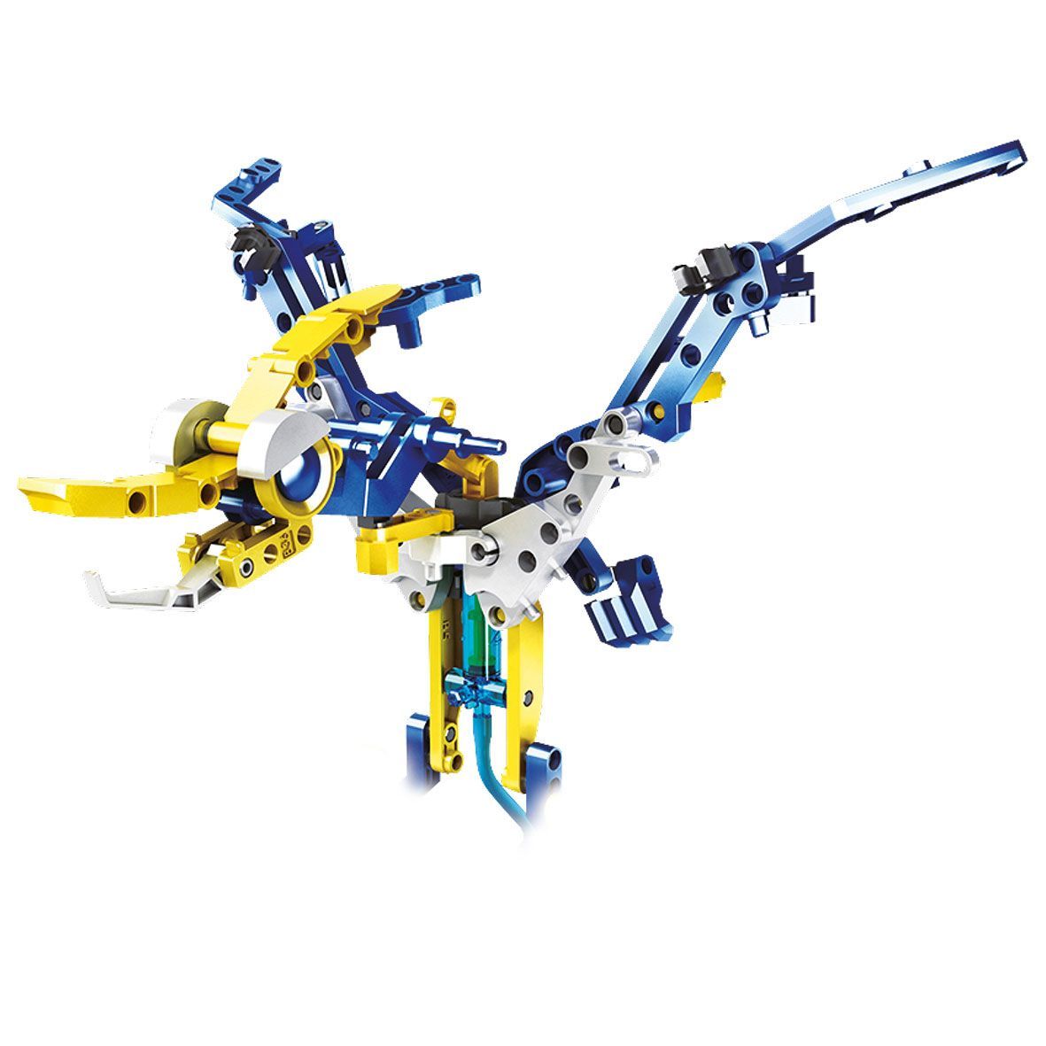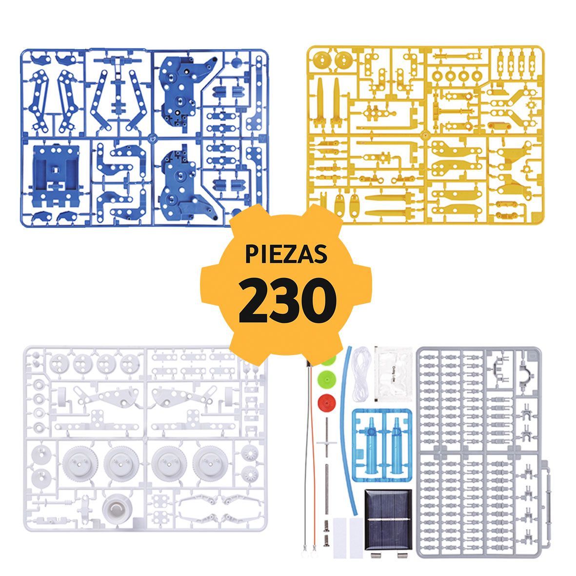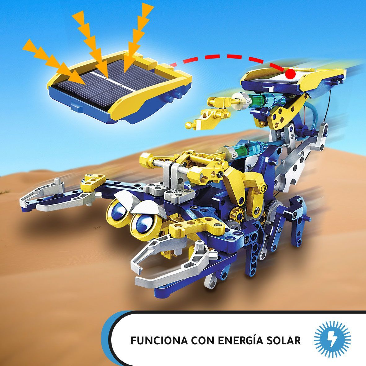 Con el nuevo Taller de Robótica puedes montar hasta 12 robots diferentes. Funciona con energía solar y propulsión hidráulica. Durante el montaje aprenderán cómo funciona la transmisión de energía y el proceso de transformación de la luz a energía eléctrica.