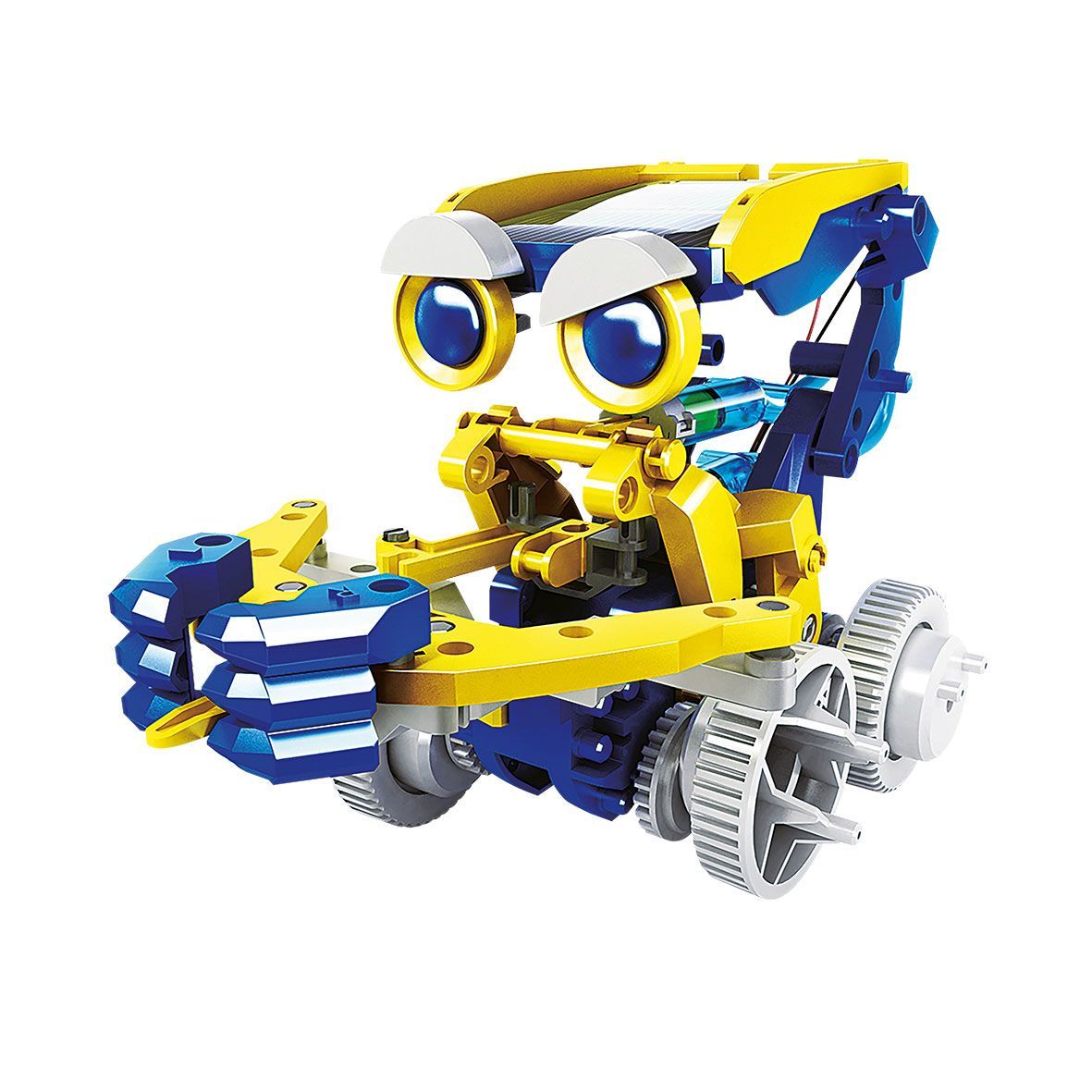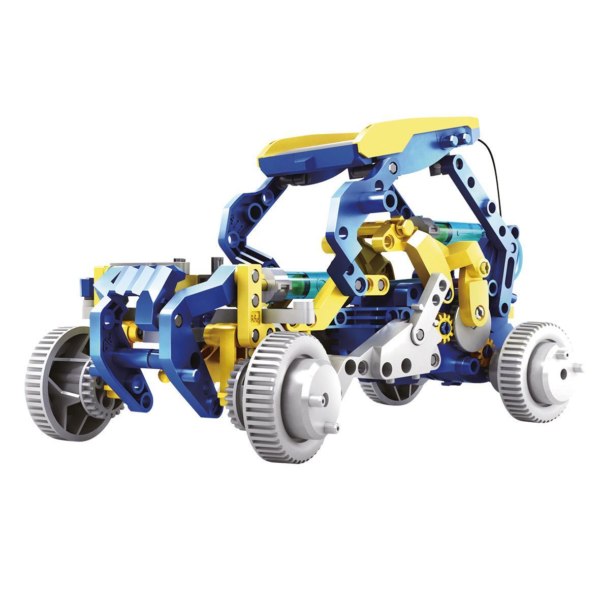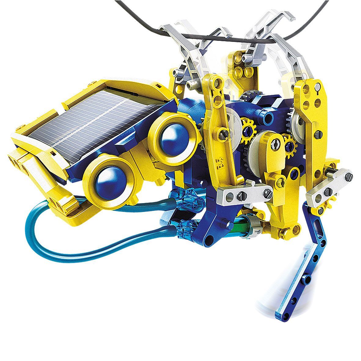 Con el nuevo Taller de Robótica puedes montar hasta 12 robots diferentes. Funciona con energía solar y propulsión hidráulica. Durante el montaje aprenderán cómo funciona la transmisión de energía y el proceso de transformación de la luz a energía eléctrica.